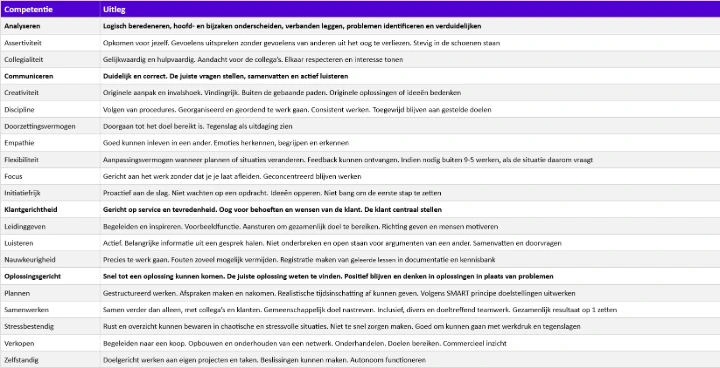 De kerncompetenties en aanvullende competenties wegen zwaarder bij de beoordeling dan de rest van de competenties.